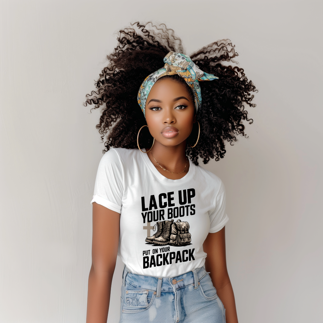 It’s time to rise, warrior! The “Lace Up Your Boots” t-shirt is a call to action for believers to stand firm in faith, walk boldly in purpose, and step into spiritual battle with confidence. Whether you're on the front lines of ministry or everyday life, this tee reminds you to stay armored up.